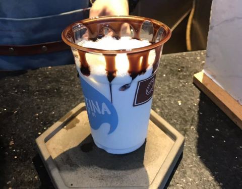 咖菲纳咖啡第二次打卡,咖啡mix牛奶mix巧克力酱,搭配还是那么完美,第一口还是那么惊艳! 这里牛奶用的是新鲜香满楼,正!支持广州货!! 这次2个人share一杯,觉得分量刚刚好~~下次一定要试试其他出品
