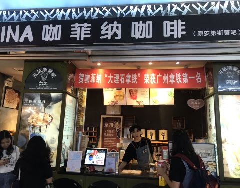 探店广州 | 江南西网红大理石咖啡☕ · 爱喝咖啡☕的人都知在江南西有一家屹立10年的冠军咖啡店【咖菲纳咖啡】据说店里最帅的小哥哥暖男咖啡师曾多次参加各项大大小小的全国、国际性的比赛,并获得冠军的咖啡师太...探店广州 | 江南西网红大理石咖啡☕ · 爱喝咖啡☕的人都知在江南西有一家屹立10年的冠军咖啡店【咖菲纳咖啡】据说店里最帅的小哥哥暖男咖啡师曾多次参加各项大大小小的全国、国际性的比赛,并获得冠军的咖啡师太厉害了!年轻、帅气又有才华,怪不得圈了不少粉丝了到店很荣幸偶遇到传说中的冠军暖男咖啡师,当然要合照打卡喇 · ☕️明星产品: 镇店之宝非【大理石拿铁】莫属! 淋边的巧克力搭配上黄金比例的浓缩咖啡☕与鲜奶碰撞出的神仙味道,让你每一口都有不一样的味觉体验,千人千种享受喜欢姜味的朋友还可以选【姜姜姜冰拿铁】噢,风味非常独特,第一次喝就被种草了! · 霸气美式西瓜 霸气美式水果气泡系列,在西瓜气泡里加入美式咖啡,顿时气泡大增,抓紧时间马上喝一口试试味道,果然与众不同啊 · 招牌肉蛋吐司 为了保持品质,【肉蛋吐司】选用了五谷杂粮土鸡蛋蛋黄特别橙黄,蛋浆流心,卖相分外诱人。新鲜秘制猪里脊肉嫩带汁,整个搭配堪称黄金组合!每天分时段限量供应噢! · 招牌甘梅地瓜 新鲜现炸的甘甜地瓜条,搭配台湾最爱用的本地话梅粉,味道特别,试过就会爱上! · 不说不知道: 其实【咖菲纳咖啡】原名:安第斯薯吧,是江南西一带小有名气的网红咖啡店噢,现在升级为【咖菲纳咖啡】希望大家都记住这里其实主打“咖啡喇”☕,嘻嘻! · 咖菲纳咖啡(江南西店) 江南西路46号人防工程地下一层江南新地商业街D03号铺(原安第斯薯吧)