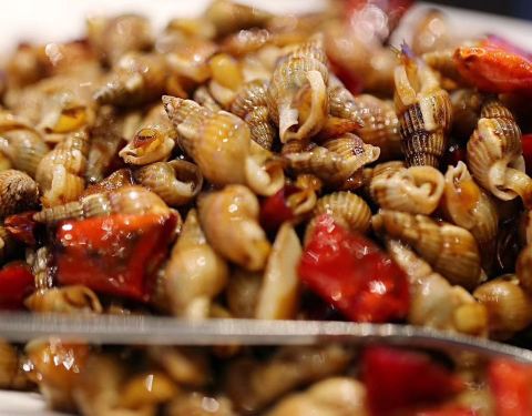 - 青岛啤酒各位领导请客,啤酒围成一圈,海鲜又是一桌,还有知鸟吃,海胆特别大