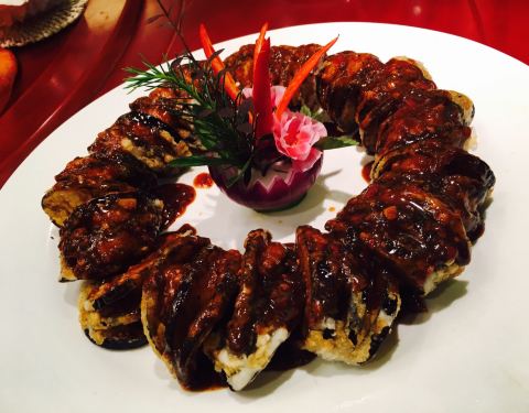 广开真是来了好多年的店了。 家庭聚会基本都在这里。 菜品菜品 蝶鱼头 很受欢迎的一道菜,转了大半圈基本就没了哈哈哈,味道很赞,蝶鱼头好像过了油?肉有一丢丢香酥的赶脚,底下的大蒜也很好。 毛血旺 还是比较...广开真是来了好多年的店了。 家庭聚会基本都在这里。 菜品菜品 蝶鱼头 很受欢迎的一道菜,转了大半圈基本就没了哈哈哈,味道很赞,蝶鱼头好像过了油?肉有一丢丢香酥的赶脚,底下的大蒜也很好。 毛血旺 还是比较丰富的一道,该有的都有了。没有特别辣大概是照顾了大部分人的口味。 海鲜一锅鲜 很大一锅,小鲍鱼,基围虾,扇贝,蛤蜊,海鲜还是蛏子的我分不清麻辣口, 东西都很新鲜~扇贝很大颗。 茄盒 这个很惊喜! 本来看着很大一块觉得吃完这快就要饱了啊,然而茄子实际切的很薄,中间夹的是整颗虾仁!!三层茄子片夹了两个大虾仁~啊好开心 蒜香小排 小排骨很小块,入口方便,蒜香味道也很赞,肉脱骨了~好吃~ 炸虾仁 面糊裹得很薄,炸的酥脆,加了小香葱调味,虾仁很新鲜~空口吃也很喜欢就没蘸椒盐~ 鸡纵菌炒芦笋 鸡纵菌咯吱咯吱的很好吃~跟芦笋味道很搭~也是都新鲜所以看着坚挺饱满,色泽美丽~ 榴莲酥 特别酥...拿着都掉渣。不过相应的油也有点多.....馅儿真的是榴莲肉~ 香酥海鲈鱼 炸的很脆~喜欢各种鱼~ 醉蟹钳 常规醉蟹味道~ 豆腐 不造叫啥名字,老豆腐那种也很好吃,这个码得很整齐的特别嫩,口味也很赞~ 锅贴 茭瓜蛤蜊的和芸豆的~赞~ 还有夏至面条 服务很好,有服务费这点服务员会说~ 加水及时还给清盘子换盘子~ 特别适合家庭聚会~赞赞~