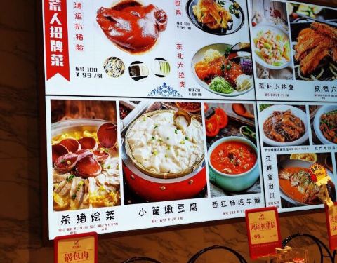 头次来的。停车可以停在右手边的小区内(用餐完记得问前台要停车票)。 点餐方式很特别,自己看好了喜欢的,就拿对应的小牌子,最后交给服务员就行。(或是去展台自己拿牌子放在篮子里) 猪脸是灿烂的笑着,前三块很满足,后面吃就要卷煎饼吃了。 上菜速度还是可以的,周五去的大厅座位比较多,五点半左右不需要等座六点后就不一定了。房间需要提前预订,碰运气是碰不到的… 这应该是青岛最火的东北菜馆了吧。很推荐。好吃。
