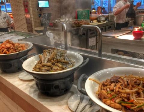 环境好 市中心交通方便 小龙虾季节 10种口味 其他还有烧烤档 三文鱼 鸡块薯条披萨都很好吃 最赞的是甜品 蛋糕品种多 款式好看 冰激凌6种口味 好吃极了 - 牛百叶上第一份的时候很好吃,第二次上来口感就很老了。甜点的话觉得相思红豆糕好吃点。虾饺皇还不错