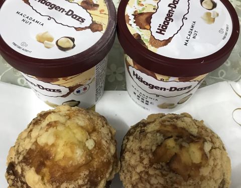 这家哈根达斯门店的位置特别好,位于南方商城一楼的中心位置。地铁莲花路站过来,天桥下来就能看到他家。 门店外的景观位非常漂亮,不过门店内的座位感觉就偏少了,门店不大,而且装修也略显陈旧。 外带了两个夏威夷果仁品脱和两个麦芬,号称哈根达斯性价比比较高的两款产品。