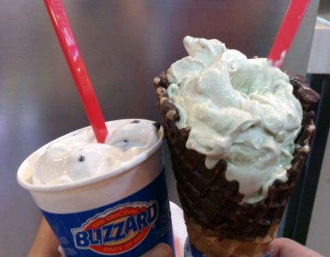 新出的那个别黑我比较一般般吧! 心中最爱说过很多次就是暴风雪系列,芒果至少浓情巧克力抹茶红豆都超级赞,一个大杯不在话下,可以刷卡可以支付宝。