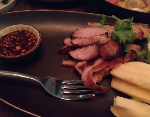 一家味道比较不错的泰式餐厅。米其林推荐餐厅。所供应的餐品主要有汤、前菜、色拉、主菜、主食、甜品等,品种比较多,比较丰富,顾客选择的异地比较大你。碳烤猪颈肉,该店的招牌菜品之一;猪颈肉的肉质比较细腻,香嫩可口。