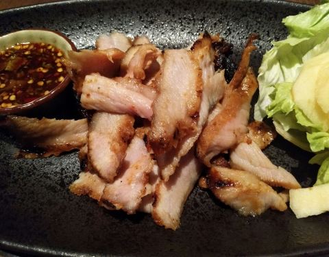 猪颈肉的肉质比较细腻,香嫩可口。碳烤猪颈肉,该店的招牌菜品之一;米其林推荐餐厅