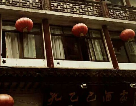 孔乙己酒家,竹窗、条凳、八仙桌、木屏风、蜡染布,一只只酒缸就搁在墙角,颇有几分鲁镇老酒馆的味道,古色…