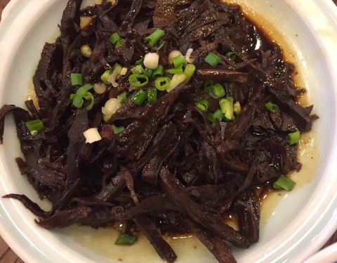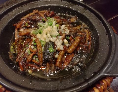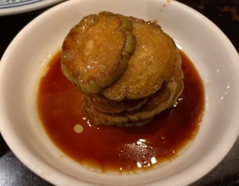 看过鲁迅笔下的孔乙己,很想去绍兴的小酒馆喝喝黄酒就着茴香豆,这不,上海文庙也开了一家孔乙己酒家,可以满足我的味蕾了,苔条小黄鱼,茴香豆,红烧肉,绍兴特有的笋干,都是一些江南的传统菜,最爱的还是红烧肉,很酥烂,入微,吃后嘴巴留有甜味,而肉也是肥而不腻,恰到好处。而肉下面铺垫的梅干菜也是充分吸收了肉的汁水,似乎比肉更好吃哦。值得推荐的一道好菜。