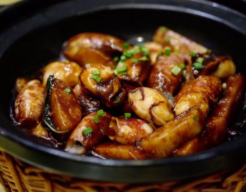 孔乙己酒家,竹窗、条凳、八仙桌、木屏风、蜡染布,一只只酒缸就搁在墙角,颇有几分鲁镇老酒馆的味道,古色古香的江南特色。特色菜写在木牌上挂在厨房的门口,空气中弥漫的甜甜的黄酒味道,让人陶醉。茴香豆是这里必尝的,甜香咸糯,恰到好处,毫不张扬,用来下酒实再合适不过了。限量供应的梅干菜烧肉,也是推荐!肥瘦相间的五花肉炖的酥烂,吸收了肉汁精华的梅干菜也回味无穷。每到秋季,这里的蟹宴也是不可错过的。