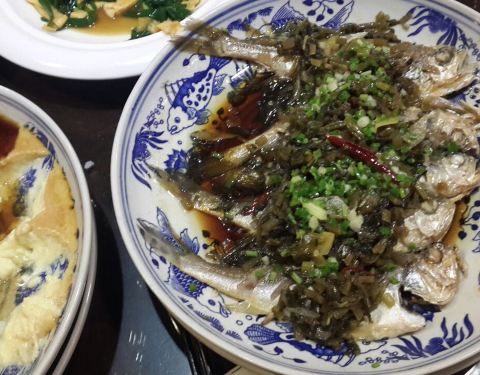 附近比较有自己特色的农家土菜馆,已经开了好些年了,臭豆腐吃起来香脆而不腻,葱油蛏子大而肥,芋头煲也是每次必点之菜,雪里蕻小黄鱼是大家的最爱,最有特色的就是长江里的大武昌鱼,肉头细腻,鲜美。其他素菜也各有特色。