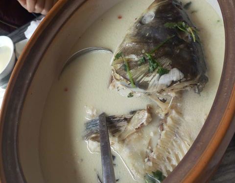 以鱼头汤为主菜的餐厅。这家的鱼头汤鲜味美,汤白如牛奶,那个鲜味很让人回味。而且量很大,服务员态度都很…