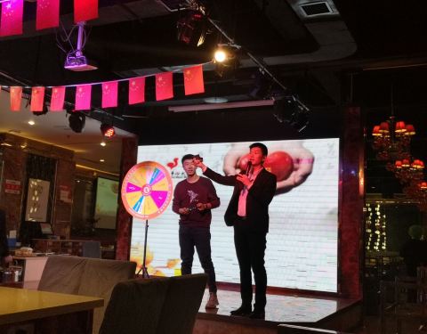 下午参观完了老马工作室,来到了观音桥步行街附近的刘一手火锅总店,店铺环境优雅,服务好,尤其安排了很多聋哑人当服务员,社会社会责任感很强的企业,还有聋哑人表演,抽奖等节目。