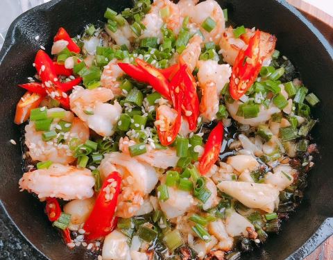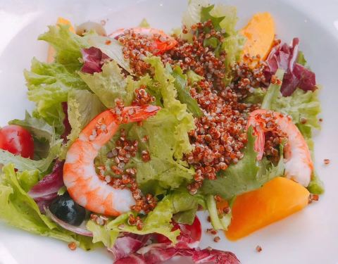 海老とサーモンのマリネとワイルドライスのサラダ マッシュルームソース