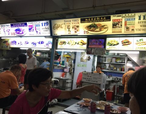 Delicious and cheap ! Go to stall 119 to order :: must order their steam fish