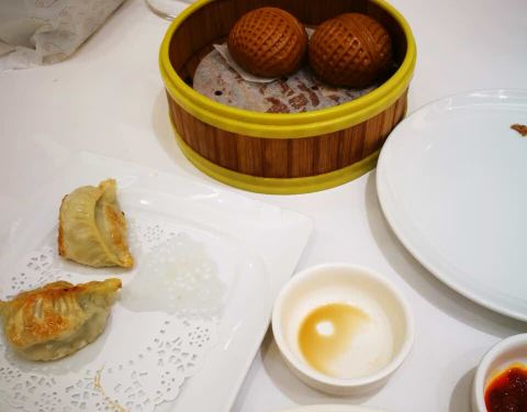【餐品】这里餐巾纸、湿巾、茶味都要收费,茶味最低5元/人,已经可以给一壶茶水,但是有人推销98元起一壶的茶,我个人是没有再加钱消费了。这里和广东、香港吃茶点差不多的,只不过不会有推车,需要菜单自己点的,单品13-26元一份不等。推荐乳鸽一份23元是堂食特价,酥脆肉也不少,有点像鹌鹑;鸡汤木耳很清淡,木耳品质好;干炒牛河一盘48元,一份够2个人吃了,没必要点太多。虾饺、糯米鸡也都不错,分量足,肉多实在。