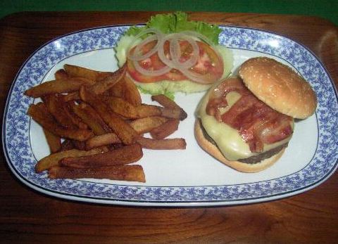 和闺蜜们举办的毕业旅行,我们来到了芭提雅,到达酒店的时候已经是下午了,酒店老板推荐我们来这个餐厅的,餐厅正好位于一个海滩的旁边,所以我们就绝对在外面就餐了,餐厅装饰很有当地的特色,服务也很不错,上菜的速度还是很快的,煎蛋很不错,嫩嫩的,非常好吃。薯条不软不硬不脆刚刚好,搭配这汉堡、烤肉、烤土豆和花生米,味道好极了。摆盘非常的漂亮,食物的搭配上也让人很有食欲并且分量也很足,我们几个都吃的很饱,然后在餐厅旁边的沙滩上散会步菜回的酒店,我们打算在离开之前还来这家吃一顿。