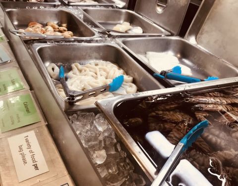 Fish and chips, calamari is world class .. But don't bother with crabs or prawns .. They are overly salted and water logged from the trays they are kept in.We will return but for the fried foods onlyFish and chips, calamari is world class .. But don't bother with crabs or prawns .. They are overly salted and water logged from the trays they are kept in.We will return but for the fried foods only