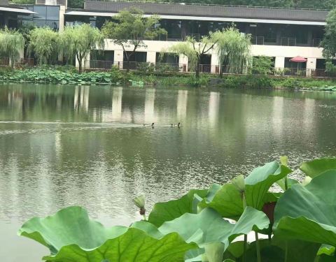 - 环境超级棒,可以到这里吃吃饭,也可以在园内走走,园内环境非常棒,夏天荷花超级美,这是一个既可以吃东西