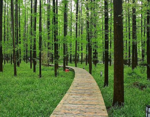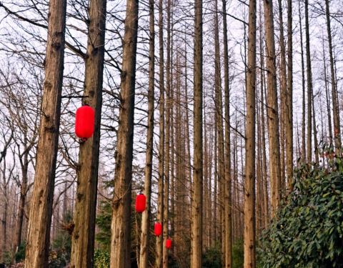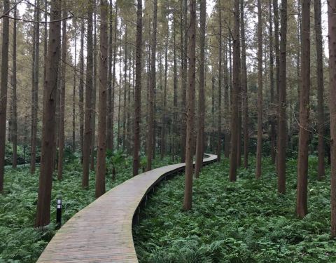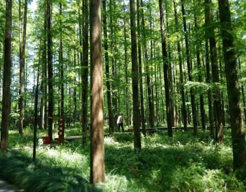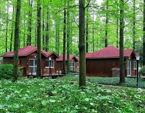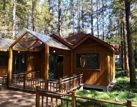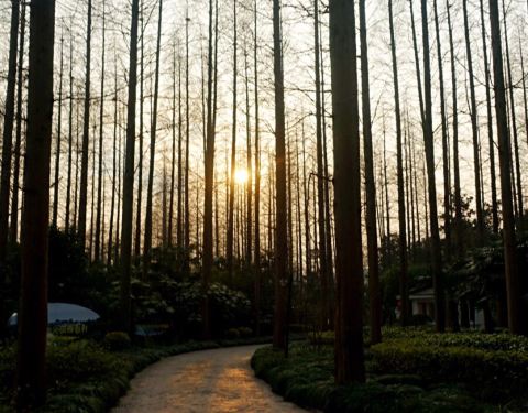 度假村里有许多水杉树,森林小木屋四面玻璃,环境怡人。坐在茶室里品茶感觉很舒服。茶室里买的正山小种茶香适口,宁静致远。还会再去