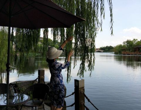 有电信背景的度假村,面积很大,有一般客房也有独栋别墅。整个度假村就是个森林,以水杉为主,有一片湖面游弋着天鹅和野鸭,餐厅就临水而建。菜式则以崇明农家为特色。