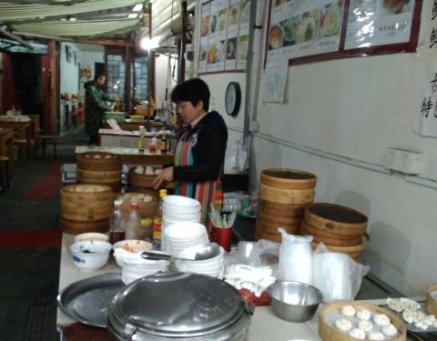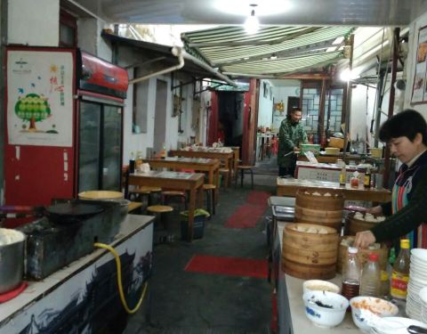 朱家角的小吃生意都不错。听说角里朱阿婆小吃馆比较有名气,我们莫名品尝