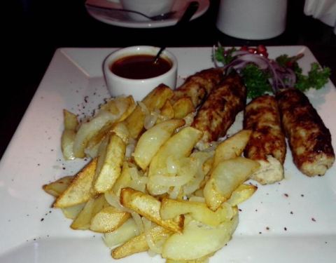 选择了靠窗户的座位,这样我们就可以在吃饭的时候俯瞰街道,吃了奶油罗宋汤,喀山串土豆、鸡肉烧烤(烤肉串