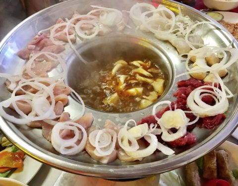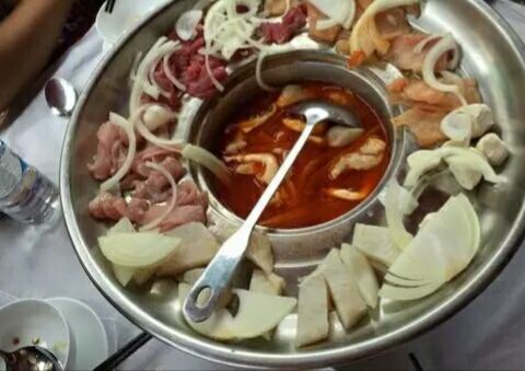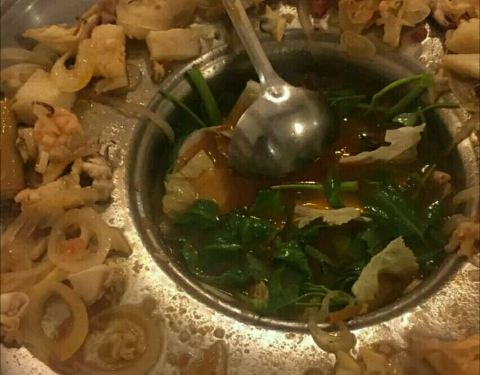 门面很普通的一家小店,但是感觉这边的饭菜质量不错,在这里品尝了了越南的火锅,感觉挺特别。汤锅的周围有一圈盛肉和蔬菜的地方,等锅底的汤烧热了,先用汤勺將汤舀起来浇在肉上,然后再将肉下到锅中稍微一刷就...