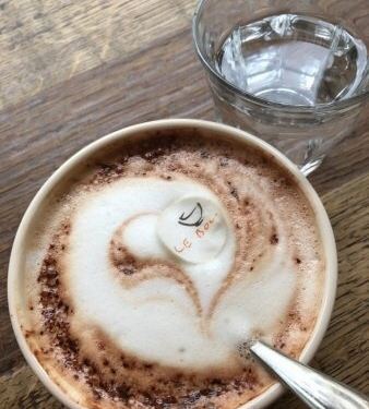 The latte is big and tasty
