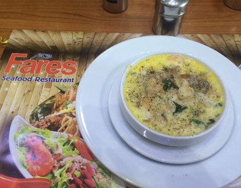 Лучший ресторан морепродуктов в Шарме, расположен так де в Old Market. Обязательно попробуйте суп из морепродуктов Fares 35 фунтов и тажин с креветками в белом соусе 55 фунтов. (На фото тажин)