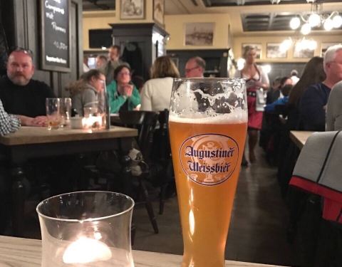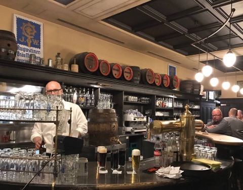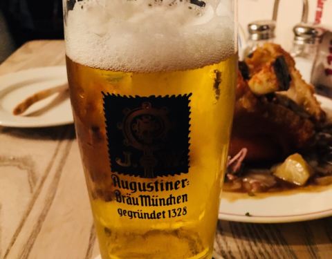 明天即将离开德国,需要再来感受一下烤猪肘子配酸菜的极致美味,依然去了那家比邻老佛爷百货的德餐老字号。 晚上六七点钟正是人们聚餐约会的时候,餐厅排起了长队,虽然它的面积很大,座位很多。 等了大约10分钟...