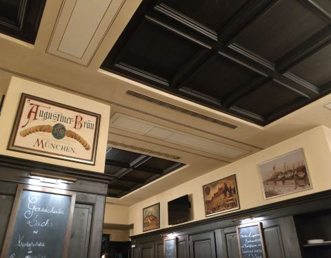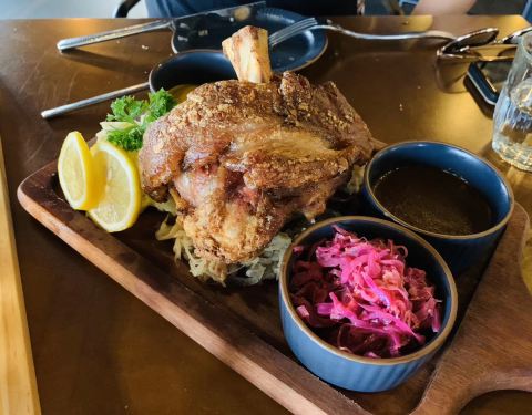 环境很棒的一家德国餐厅 猪肘很好吃,几乎是每桌必点 大家懂的呀 来德国必吃的美食 另外 啤酒也很棒,一杯杯整齐摆放 还是很有仪式感的!香肠也赞!值得推荐的一家店!