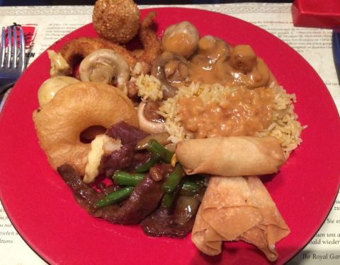 柏林一家非常受欢迎中餐厅,店内装修金碧辉煌,贵气十足,秦始皇兵马俑的陈设让人眼前一亮,这里提供中式自助餐和蒙古自助餐,厨师的推荐菜八珍宝鸭、麻婆豆腐、椒盐虾。