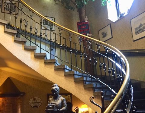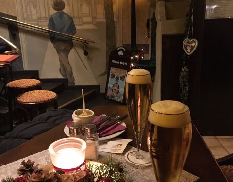 亞历山大广场附近的百年老店 主打徳国肘子 香炸 水煮 味道皆不錯 必須搭配酸菜 解腻 解鹹 湯品普遍过鹹 不敢恭維 蘋果派賣相不錯 味道普通 服務尚可 環境很有特色~