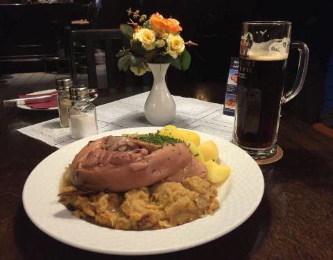 旅游杂志推荐的餐厅,在阿历山大广场的火车站大概走路10分钟就到。猪手是用水煮,十分嫰滑,但他的配菜如萝卜丝和豆泥则十分咸,想全部吃完也不行。红过那里不妨试试。