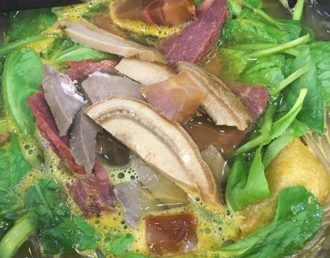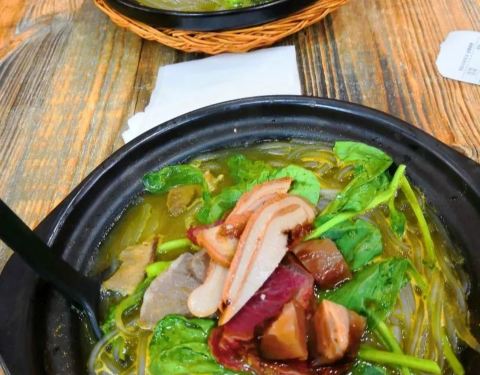 临牌全家福砂锅,里面有牛肚,牛心,牛蹄筋,料挺足的,不亏是招牌,第一次吃咖喱汤底的砂锅,味道挺好的。招牌牛肉粉丝汤加上咖喱汤底,非常好吃。