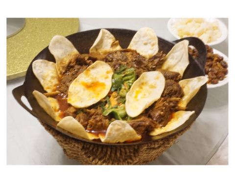 感谢大众,中的霸王餐 【位置】在汤山汤泉西路上,一条街都是农家菜,给来汤山玩的人们提供餐饮 【环境】就是很普通的土菜馆的装潢,菜单倒是用的圣旨的造型 这家非常非常非常火 因为是霸王餐,就五点去了,怕饭点耽误店家生意 我们是第一个,刚坐下来,短短二十分钟,整个一楼全部坐满了 老板娘也非常热情,我们本来还想再点两个菜,她说别点了,够吃了 【鸡汤炒米】端上来明白了老板娘的话,真的分量很大,半只鸡都很大 炒米香香的,喝着鸡汤吃非常好吃