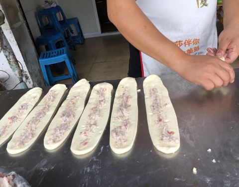 - ...排队等位,看到旁边现烙的锅盔烧饼,买了几个打发时间,没想到味道非常好吃,配上肥肠粉,味道哇哈哈