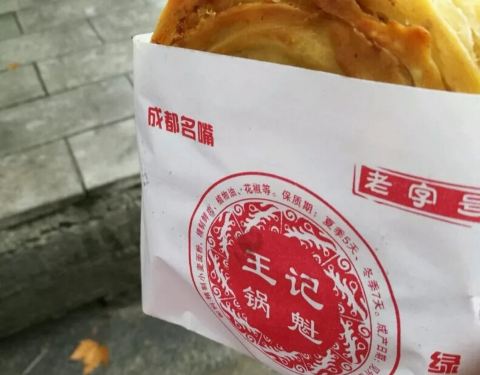 锅盔原来是著名的风味面食小吃,被称为陕西八大怪之一。现在也算是成都的特色小吃。买了个牛肉锅盔和一个猪肉的,味道都不错,比以前很红的皇中皇烧饼要好吃。 胃口小的游客,建议两人分食一个,不然一个下去就饱了