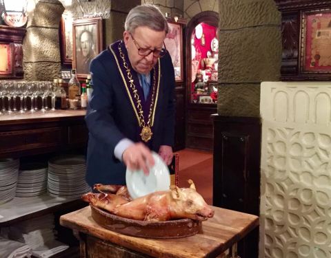 - 西班牙国王卡洛斯和王后及众多明星均来此品尝招牌烤乳猪。赞一个