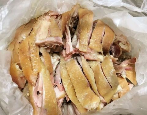 桶子鸡不同于烧鸡、卤鸡……肉会给人不很烂的感觉,要是直接啃,或者撕,那可够呛…… 所以要剔骨后,把肉切细一些,才会感到越嚼越香的滋味。 鸡皮淡黄色,切分后的鸡肉隔着袋子就闻到阵阵扑面的肉香。鸡肉白嫩,没有过多辅料。 夹起一片,入口直感到肥而不腻,鲜嫩脆香。 一定要细细品味,体味齿颊间的脂溢鲜香。某种程度上来讲,要享受吃桶子鸡的过程。 鸡皮有一定厚度,脆而筋道,但神奇之处就在于,并不是嚼不烂,反而越吃越上瘾。 鸡身的肉很丰满,脂肪厚足。鸡腿处最是好吃。