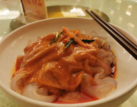 - 冷菜的色拉调得挺好吃,【海蜇】泡得很脆带微酸,【粉皮】拌开了咸淡适宜
