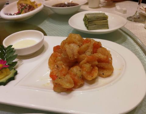 蒜蓉开片草虾食材新鲜,但垫在下面的粉丝少了点。其余菜品都不错。 松鼠鳜鱼新鲜,油炸程度恰到好处,