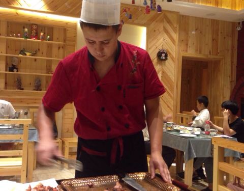 ...开业,屋里还有点木头味,菜做的很正宗,我们点的俄罗斯大串,俄罗斯厨师亲自上菜改刀还有美女服务员
