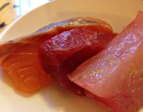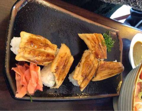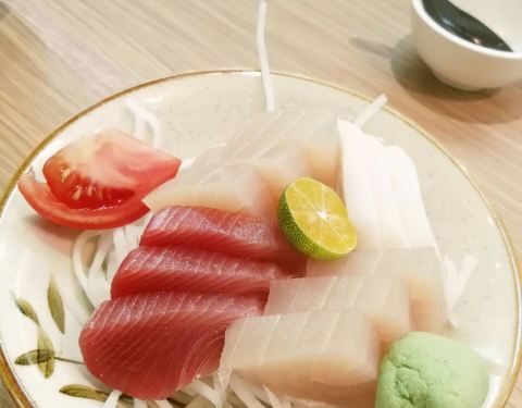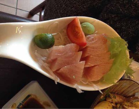 - 端上来的生鱼片切得很厚太过瘾了,寿司上的生鱼片也很厚味道很好!不虚此行
