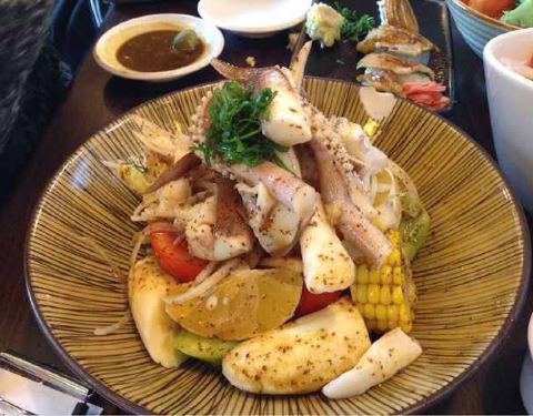 - 口味不错,特别是盐烤大虾,很美味!炸豆腐外脆里嫩,推荐!综合生鱼片,12块厚切,吃得过瘾