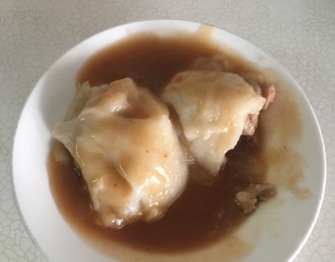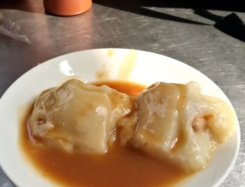 这家美食小店还挺出名的呢,所谓的肉圆,我尝了一下,外面包裹着一层米糕,中间的馅料是肉肉,煮熟之后,在外面淋上一点酱汁,就可以吃了,比较的普通,味道还行。
