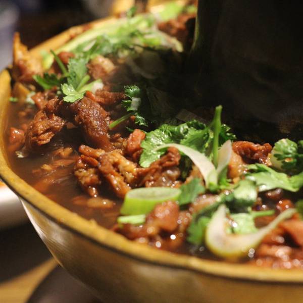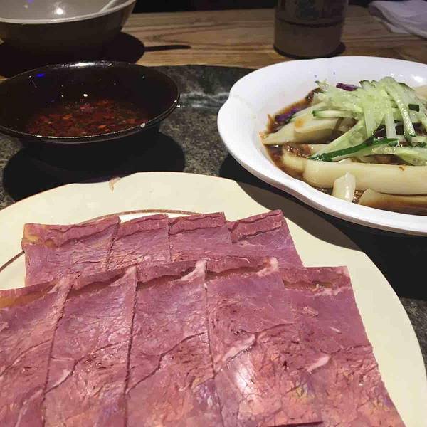 这个长山药,绝对超过了我之前吃过的所有做法的长山药,一盘根本不够吃呀。天元奎的牛肉铜锅也是很不错的,在牛肉的选用上就足见用心了,不是用刀切的,这牛肉是打出来的,所以咬起来就更筋道,在配上特制好的酱汁慢慢熬制,粉条白菜和香菜的点缀,哇,超乎想象的美味,值得推荐。大家这筷子都往一处使,可见牛肉铜锅的美味了。