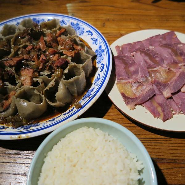 山西的面食那是一绝,传统的刀削面、手擀面、剔尖面就不多说了,平遥的面食花样之多,不得不佩服平遥人民的创意和智慧,剪刀面、猫耳朵、擦格斗、切疙瘩、栲栳栳、搓鱼鱼等等等等,只要是一团面,在平遥妇人的手中就会生出了花,各种工具都可以成为厨具,制作出形态各异的面食,丰富了餐桌。在平遥古城,选了一家名气比较大的餐馆——天元奎饭店,一份套餐里两份特产平遥牛肉和蜜汁长山药,另外三份面食,可见面食在当地的重要性。还是要特别介绍一下这家店,室内装饰品都是实实在在的老物件,有的或许价值连城,虽然没有现代仿制的复古风大气美观,但是却最自然最质朴,很喜欢这种感觉,原汁原味。