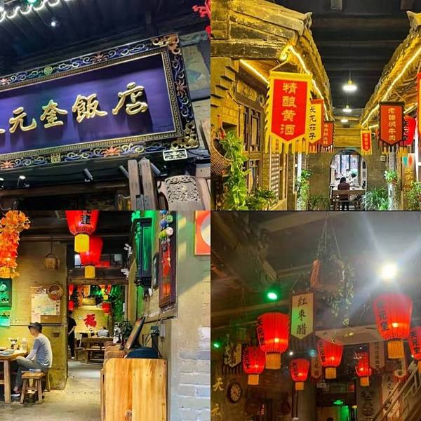 🌻天元奎饭店店里的环境古色古香属于古风气息夜晚可以感受古镇的风情 还可以美美的拍照 想拍照的帅哥美女们千万不要错过,进了大门就能看到开放式的厨房,可以看到里面正在制作美食。除了店里招牌菜长龙茄子、香醋鸡蛋、酸菜莜面鱼鱼、牛肉铜火锅、牛肉栲栳栳等以及地方小吃,都很好吃。