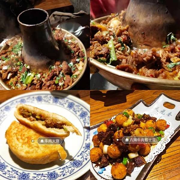 - 选了一家名气比较大的餐馆——天元奎饭店,一份套餐里两份特产平遥牛肉和蜜汁长山药,另外三份面食,...